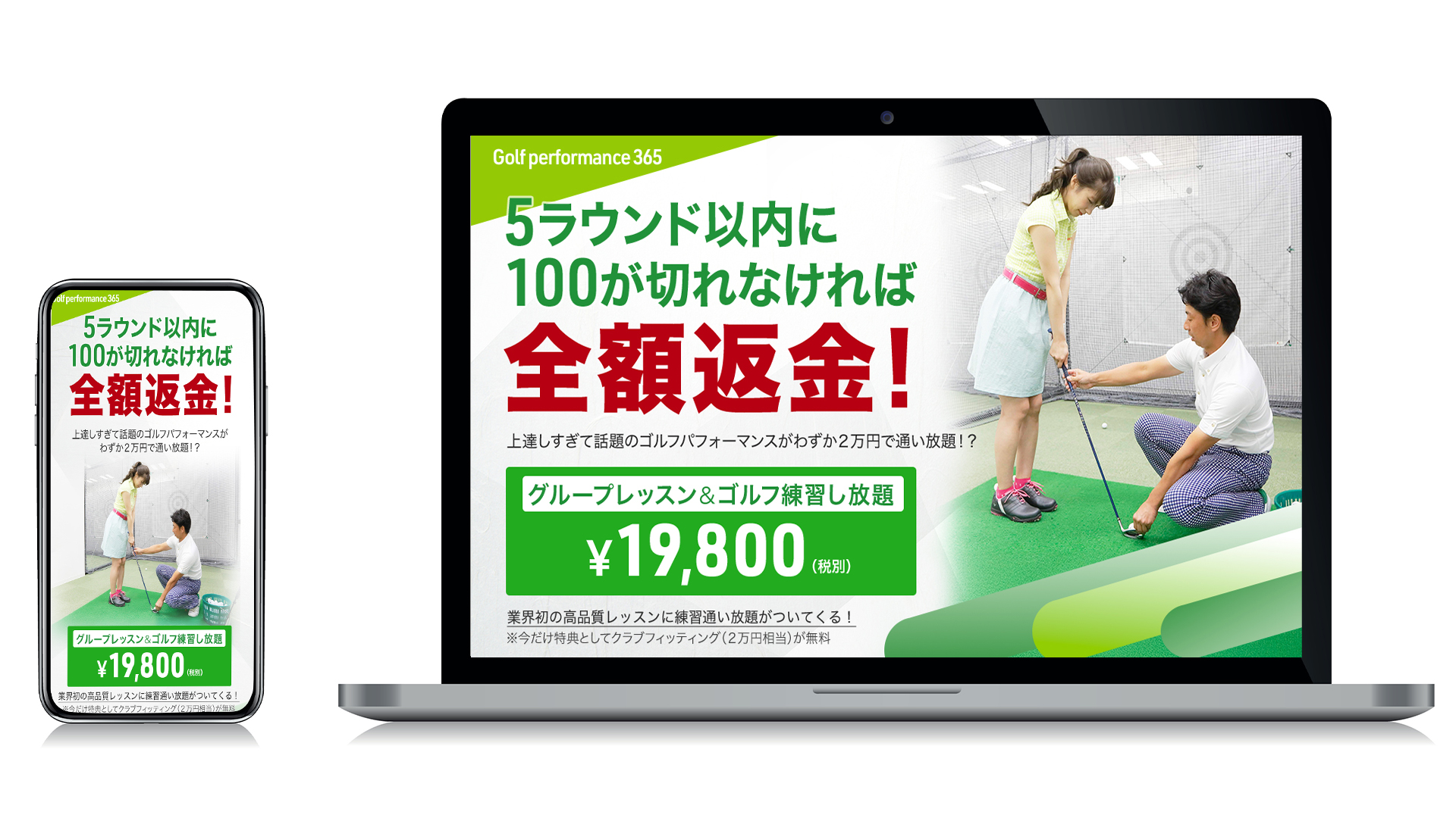 ・サービスの雰囲気が伝わりやすいリアルな写真を入れてイメージが湧きやすゴルフのサービスだといように工夫しました。