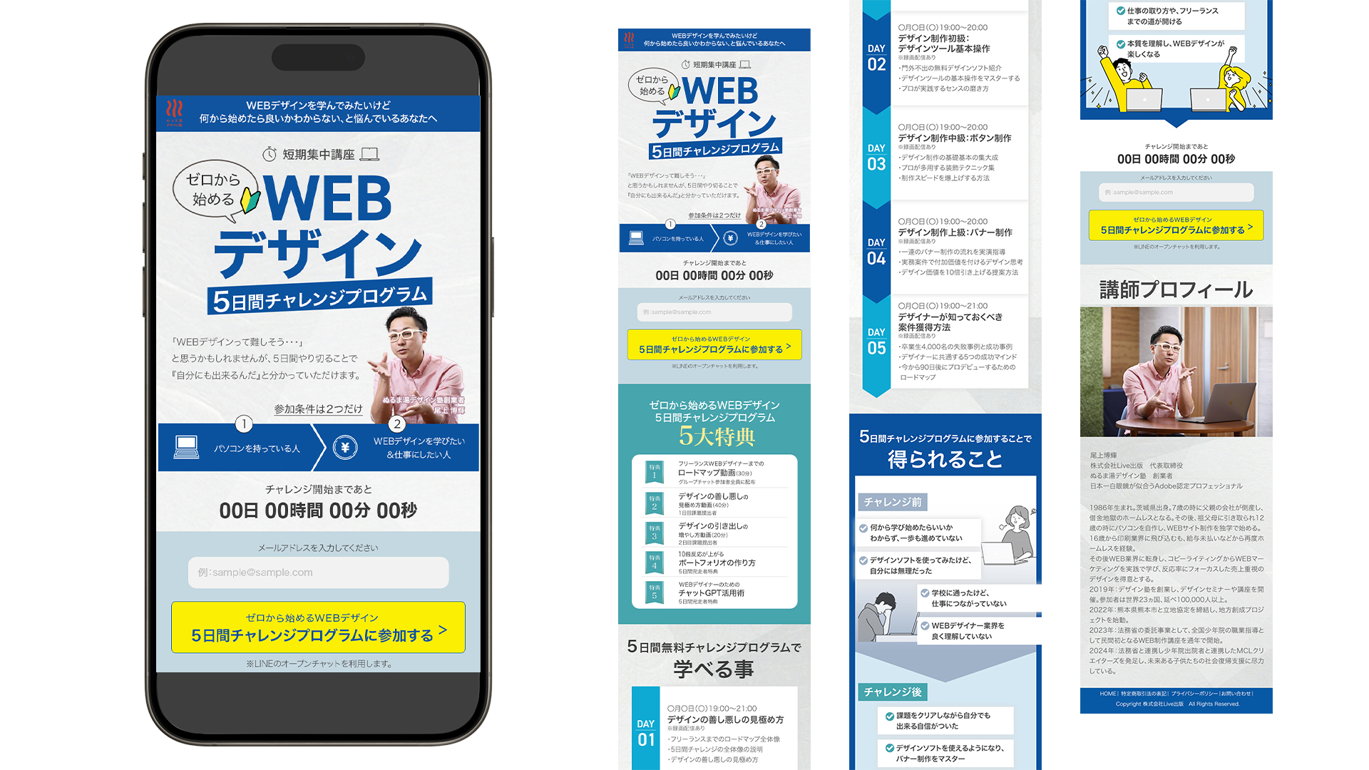 ・無料のWEBデザイン5日間チャレンジに参加してもらうこと。チャレンジ後には、最後に講座案内もする予定。